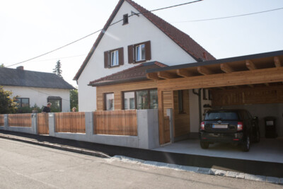 Ein Einfamilienhaus im Kamptal sollte drainagiert, die Einfriedung erneuert und ein Carport errichtet werden. Zusätzlich planten die Bauherrn Umbauarbeiten im Keller, um diesen trockenzulegen und Wohnfläche zu gewinnen. Die an den Keller ebenerdig angrenzende Terrasse sollte ebenfalls erneuert und wie der Eingangsbereich des Hauses neu gepflastert werden. Ein Gartenhaus hinter bzw. unterhalb des Carports wurde im Zuge der Umbauarbeiten zusätzlich in Auftrag gegeben, ebenso die Zimmererarbeiten (Carport, Windfangverkleidung, Zaun, Gartenhaus, Holzschiebeläden, Terrasse).